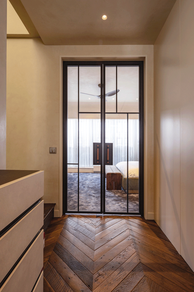 Set back on the roof of a loft building in the heart of SoHo, this duplex penthouse apartment uses a rich and layered material palette to create a modern city home. Starting with some minor plan modifications, the Shadow Architects team worked to optimize the compact layout and access to three private terraces. Extensive built-in millwork adds to the customization, with new MEP, low voltage, lighting and AV systems installed and carefully integrated. The team worked with the design-minded owner throughout the process, selecting finishes, furnishings, and decorative lighting throughout, and brought together the large group of talented fabricators to create this home.