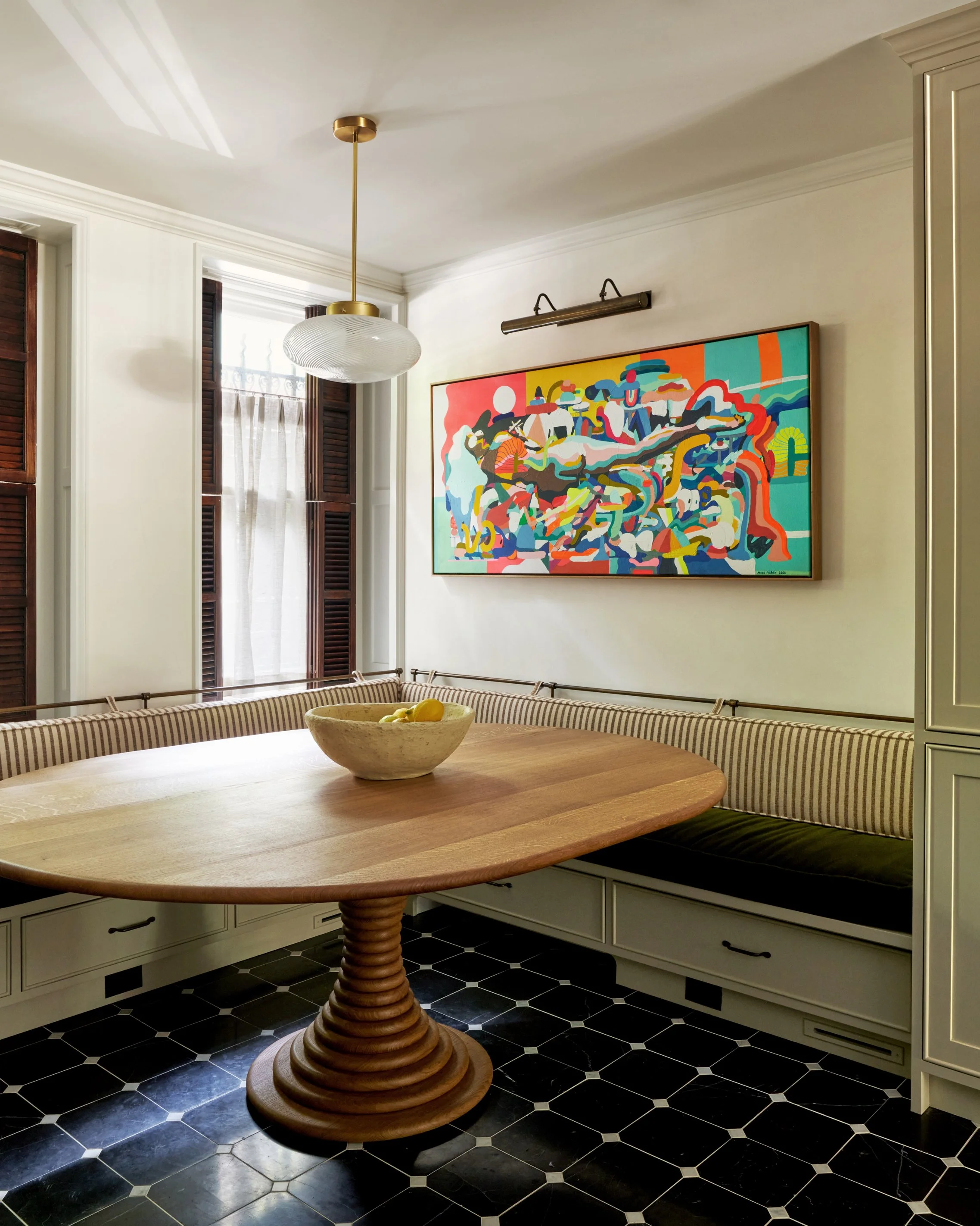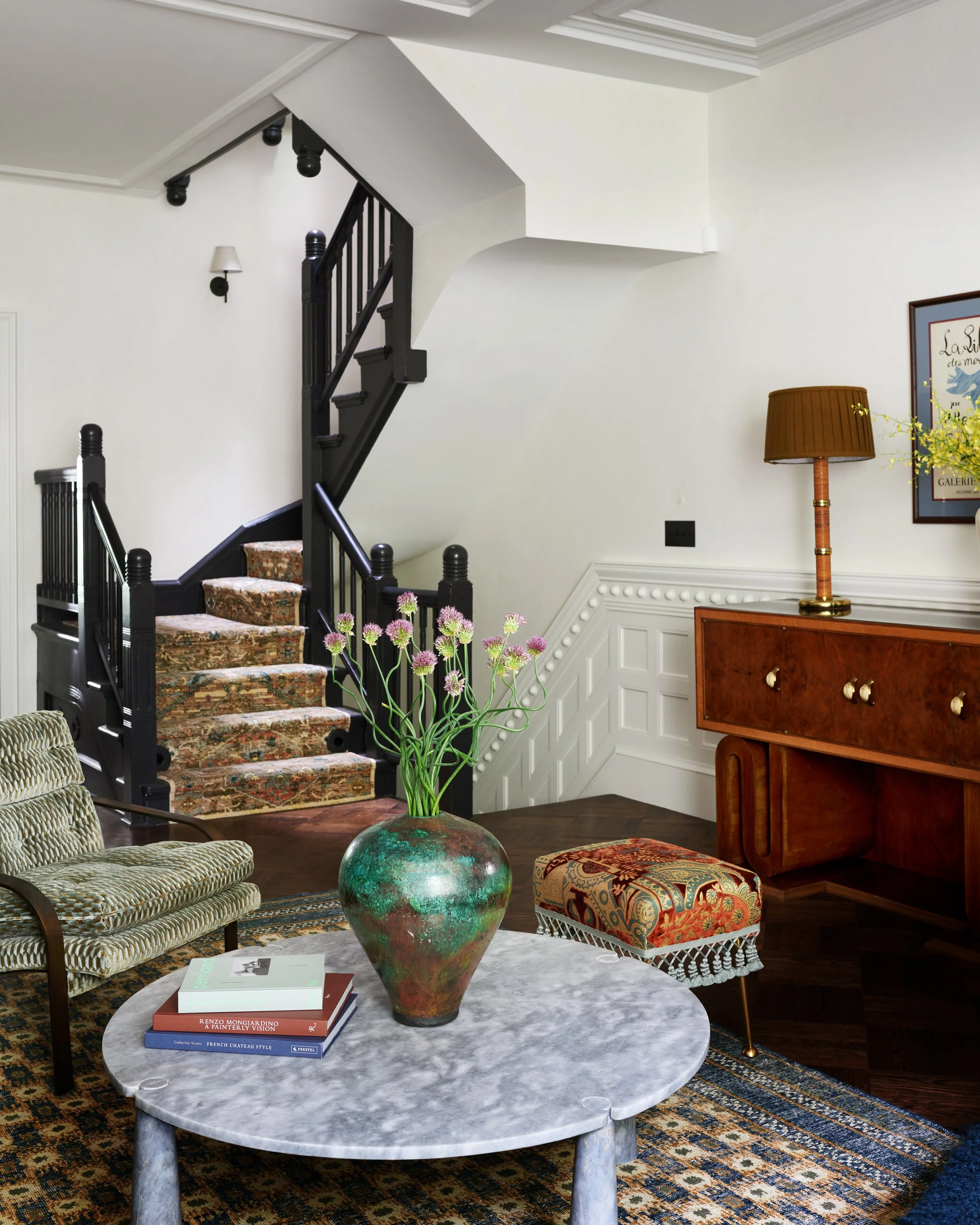 On a tree-lined block of the West Village lies a series of four matching townhouses originally designed by William Tuthill, also the architect of Carnegie Hall. When the designers and Shadow Architects were brought in to renovate one of these buildings, only a few of the interior details remained, and the team sought to bring new life and stories with them, to expand upon the history of the home. The floor plans were modified for the dining area and kitchen on the garden level and for the primary suite on the third floor, and the designers sought out motifs from Tuthill’s own pattern books as inspiration for all new millwork in the library, wainscot in the living room and other details throughout. Shadow was involved throughout the process to integrate these items into the house, along with new mechanicals, electric, plumbing, hardware and finishes. The architects also coordinated new metal and glass doors to the garden and a smart lighting system to bring an abundance of light into the garden level. The end result is a combination of new and vintage, patina and character, and another chapter of the life and design of the home has begun.